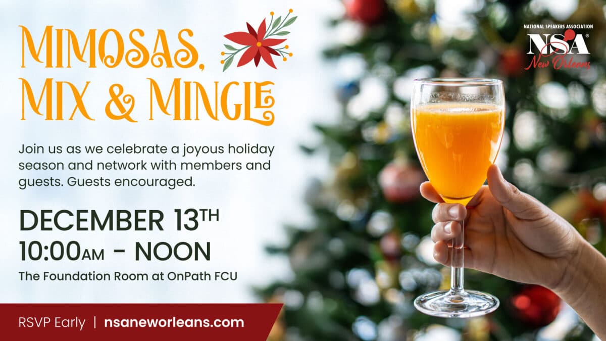 Come join us as we celebrate a joyous holiday season and network with members and guests. We encourage you to bring a guest. We will be serving mimosas and hors d’oeuvres. RSVP early so we can get a headcount for food and drinks.